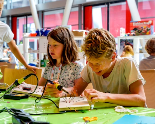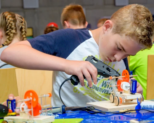 Bei uns erhältst Du die Antworten auf all diese und andere Fragen! Es gibt viel zu sehen und zum selber machen, wie zum Beispiel verschiedene Fahrzeuge im Windkanal beobachten. Erforschen, wie und warum Luftkissenboote „schwebend fahren“. Du kannst einen funktionierenden Bagger oder ein Auto bauen, das mit einer Mausefalle angetrieben wird und Schiffe bauen, die mit einer Kerze als Motor fahren. Wir zeigen Dir, was für tolle und manchmal auch etwas verrückte Zukunftsideen es für die Mobilität der nächsten Jahre gibt. In Verbindung damit baust du im Laufe der Woche dein eigenes Auto der Zukunft.
