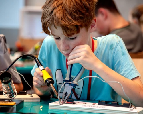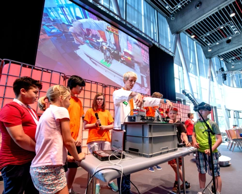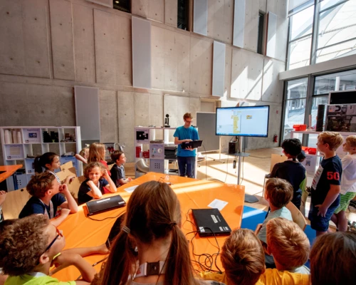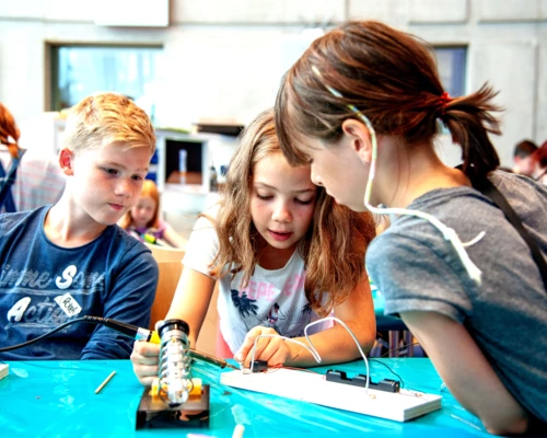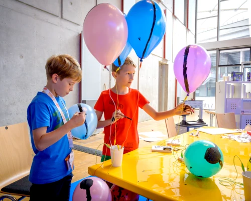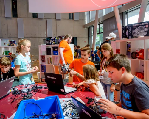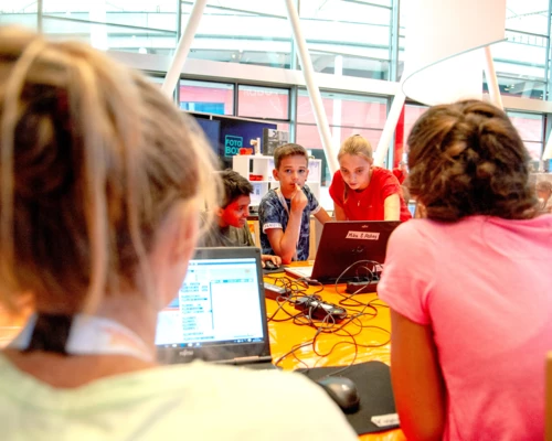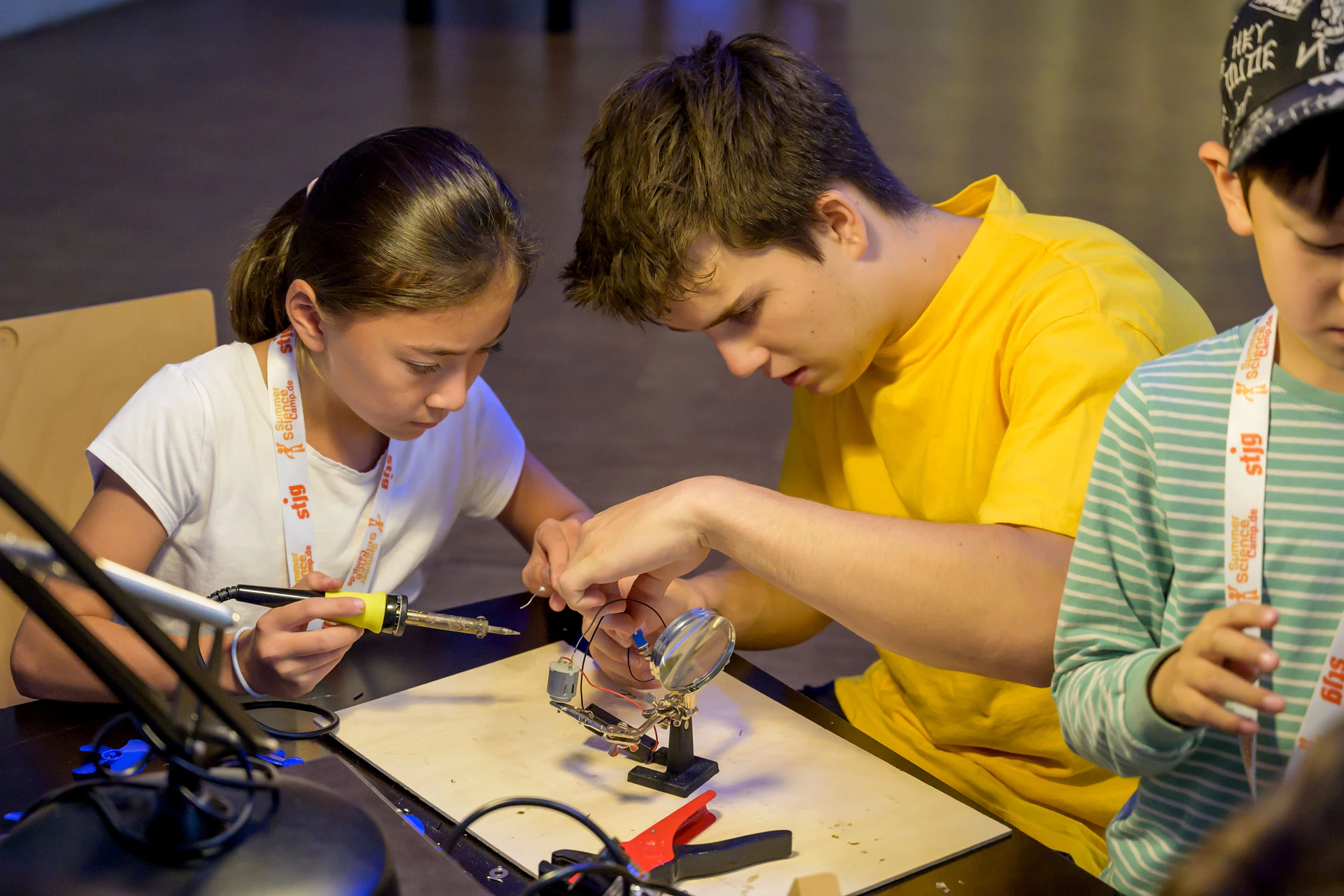 Im Summer Science Camp kannst du Spannende Experimente zu Naturwissenschaft und Technik machen. Am ersten Tag lernst du die ganze Wissenschafts- und Forscher Galaxie kennen und ‚fliegst‘ von Stern zu Stern. Die vier Sterne befassen sich mit den Themen Robotik, Medien, Mobilität und Energie. Am Ende des ersten Tages gibst du deinen Wunschzettel ab, auf dem du vermerkst, in welchem der Sterne du die restliche Woche verbringen möchtest. Unser Teilnehmersystem wertet dann über Nacht aus, in welchem Stern jedes Kind die Woche verbringen wird.