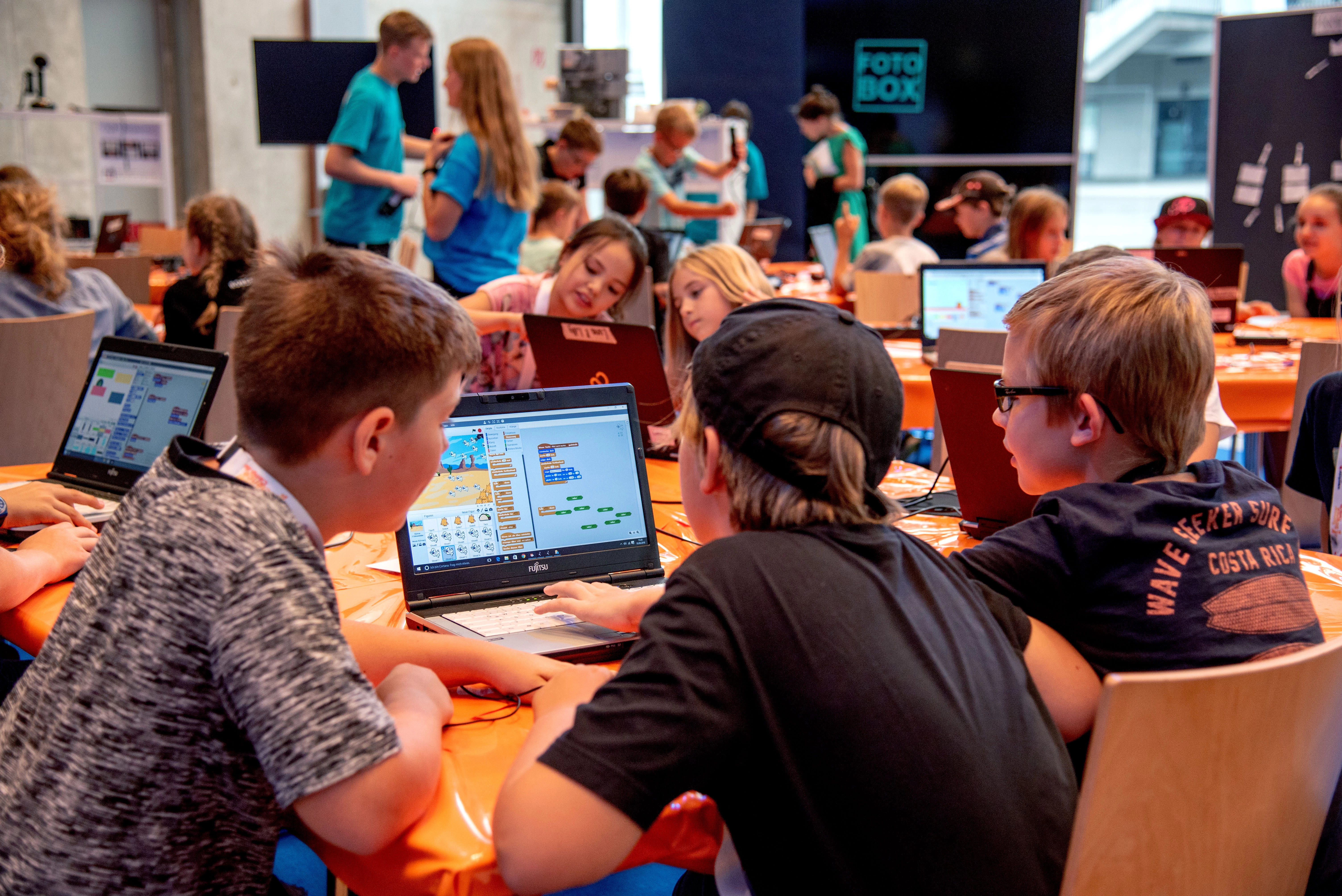 Jeden Tag nutzen wir Mobilfunk, Internet und moderne Technologien. Egal ob in der Bahn, auf dem Weg zur Schule oder zuhause, das eigene Smartphone ist als unser Begleiter immer mit dabei. Wir kommunizieren über Messenger wie WhatsApp und rufen über Skype an. Spielen Spiele auf dem Handy oder auf dem Computer und bestellen Geschenke im Internet. Digitale Medien sind überall. Doch wie ist es überhaupt dazu gekommen und wie funktioniert die heutige Technik? Was passiert hinter den Kulissen, wenn ich eine Nachricht abschicke und wie kommt diese an? Wie erkennt der Computer welche Taste wir auf der Tastatur gedrückt haben? Diese und viele weitere Fragen werden wir im Stern „Medien & Programmierung“ zusammen klären. Du baust deinen eigenen funktionierenden Kopfhörer im Design eines alten Telefons und bastelst Touchscreen Handschuhe für den Winter. Zudem Programmierst du dein erstes eigenes Computerspiel, in dem du selbst entscheiden darfst, was passiert.